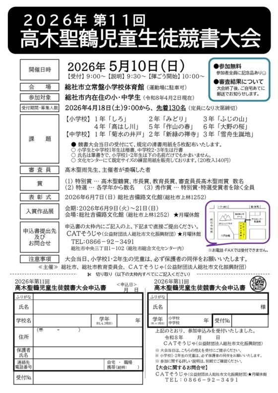 2026年第11回高木聖鶴児童生徒競書大会 参加者募集!